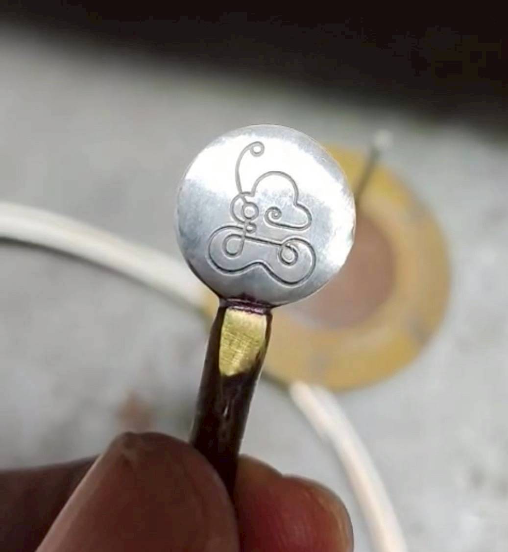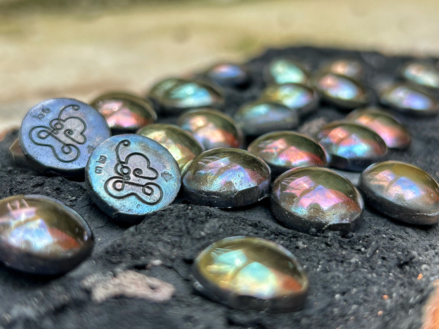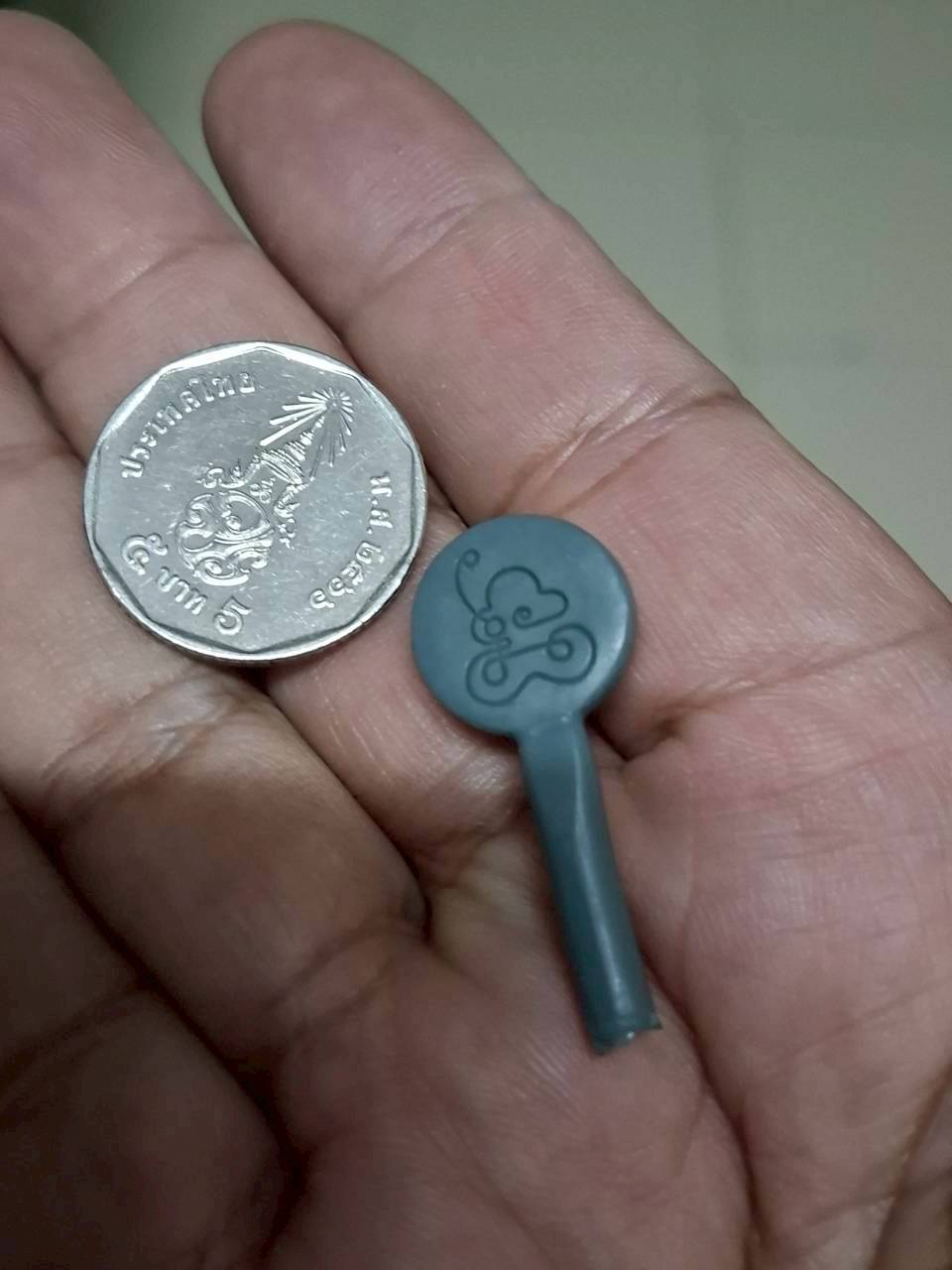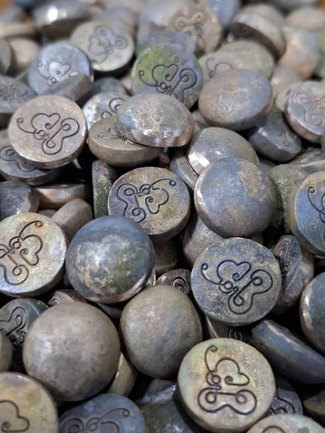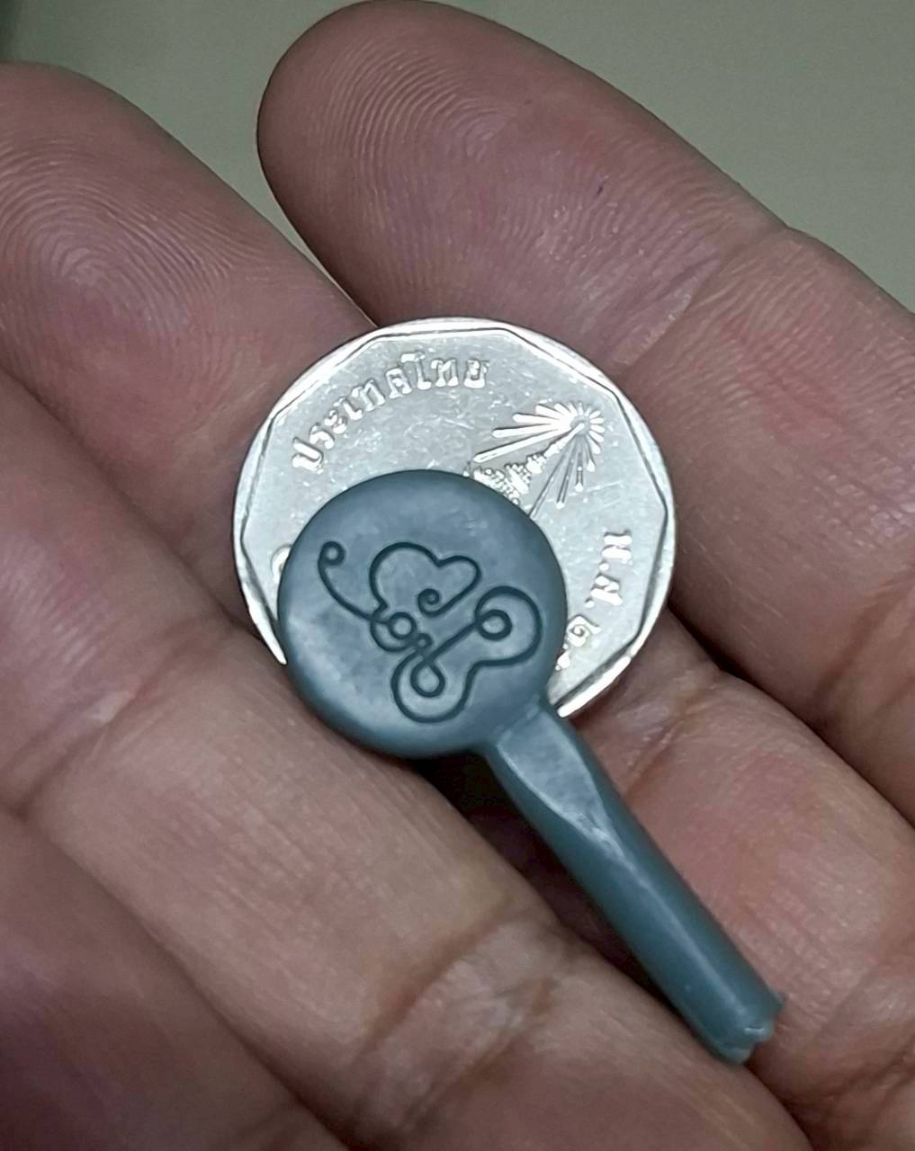 แบบพิมพ์เม็ดกระดุม เนื้อเงิน/หุ่นเทียมต้นแบบ และตัวอย่างเนื้อเมฆสิทธิ์หล่อโบราณเทดินไทย ขนาดเส้นผ่าศูนย์กลาง 1.45 มม.