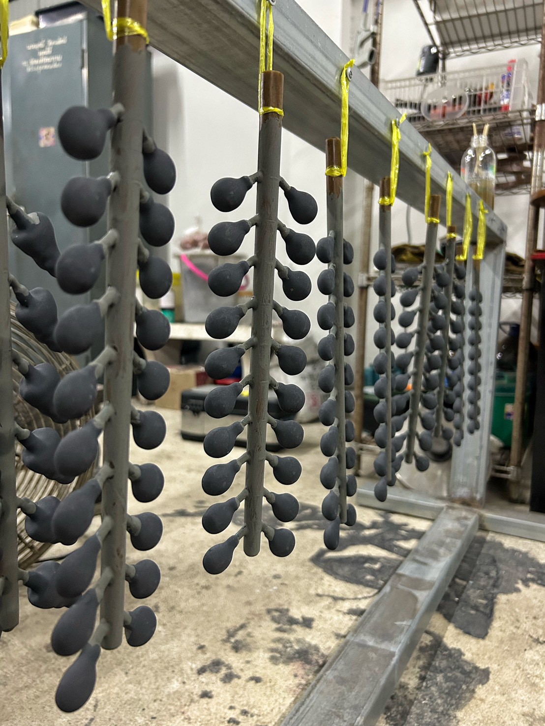 ขั้นตอนและกรรมวิธีในการเทหล่อเม็ดกระดุมรุ่นแรก " พระสังกัจจายน์เรียกทรัพย์ " เนื้อเมฆสิทธิ์ หล่อโบราณเทดินไทย
