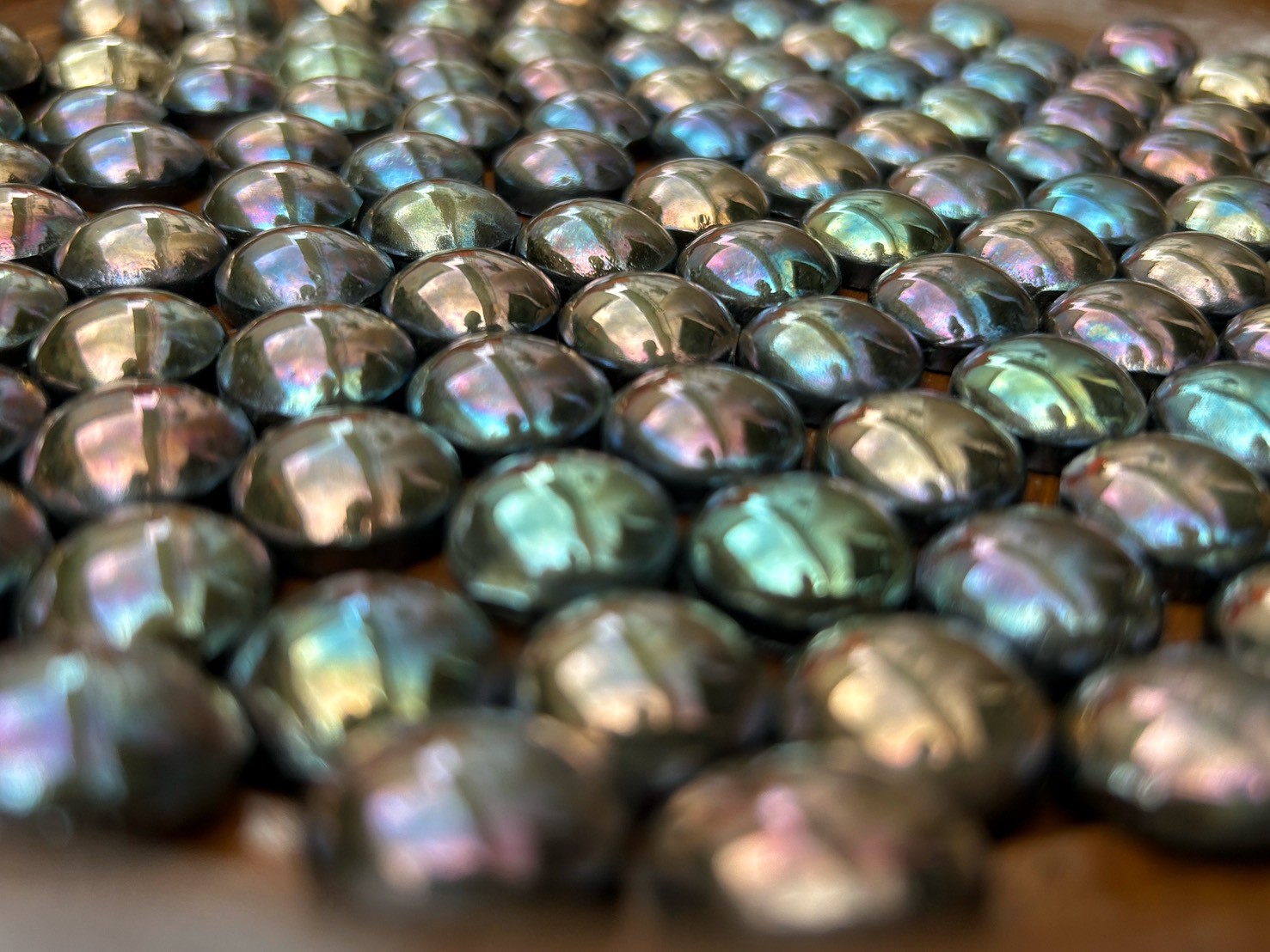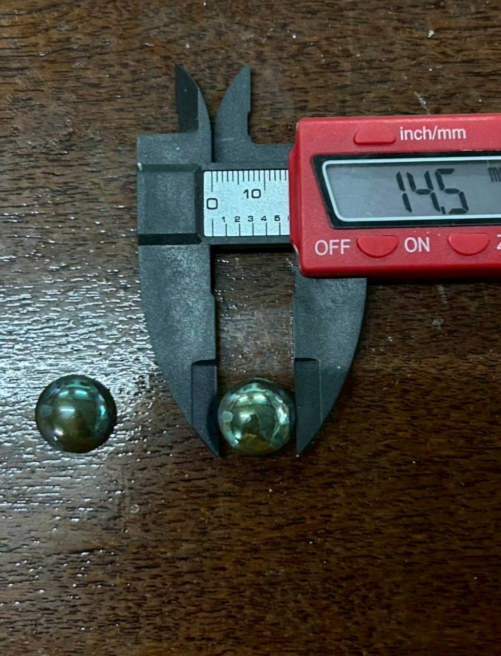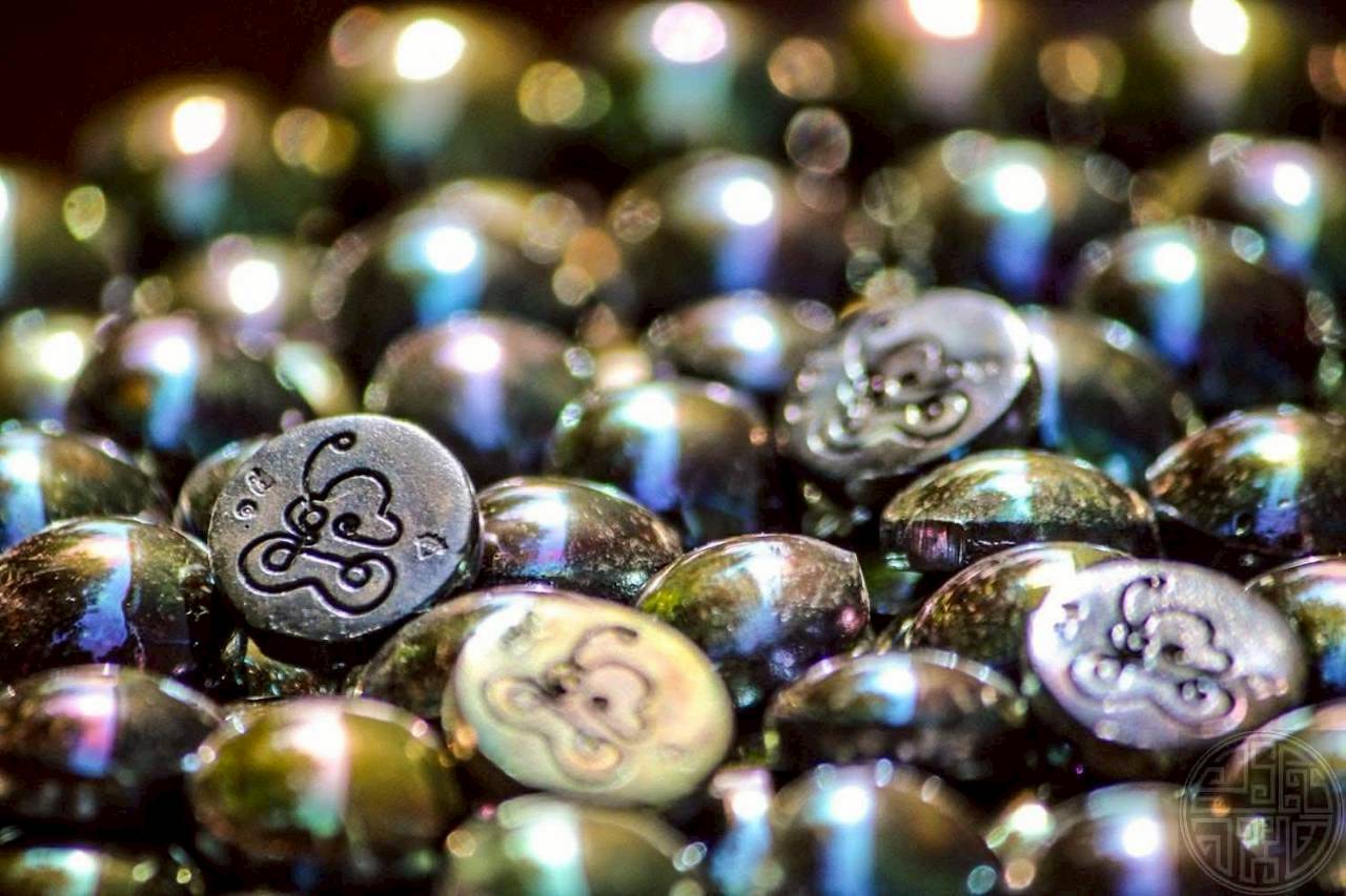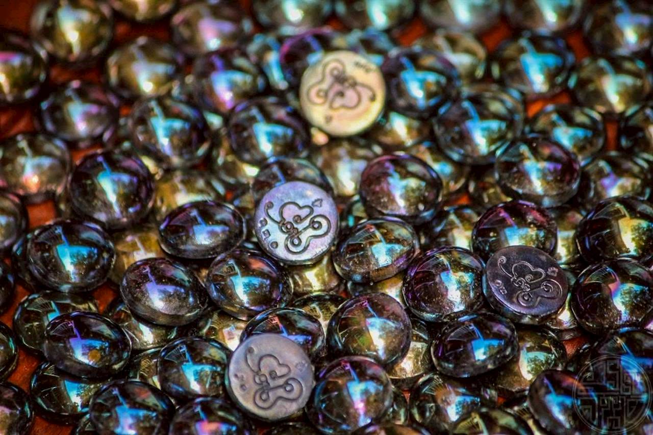 แบบพิมพ์เม็ดกระดุม เนื้อเงิน/หุ่นเทียมต้นแบบ และตัวอย่างเนื้อเมฆสิทธิ์หล่อโบราณเทดินไทย ขนาดเส้นผ่าศูนย์กลาง 1.45 มม.