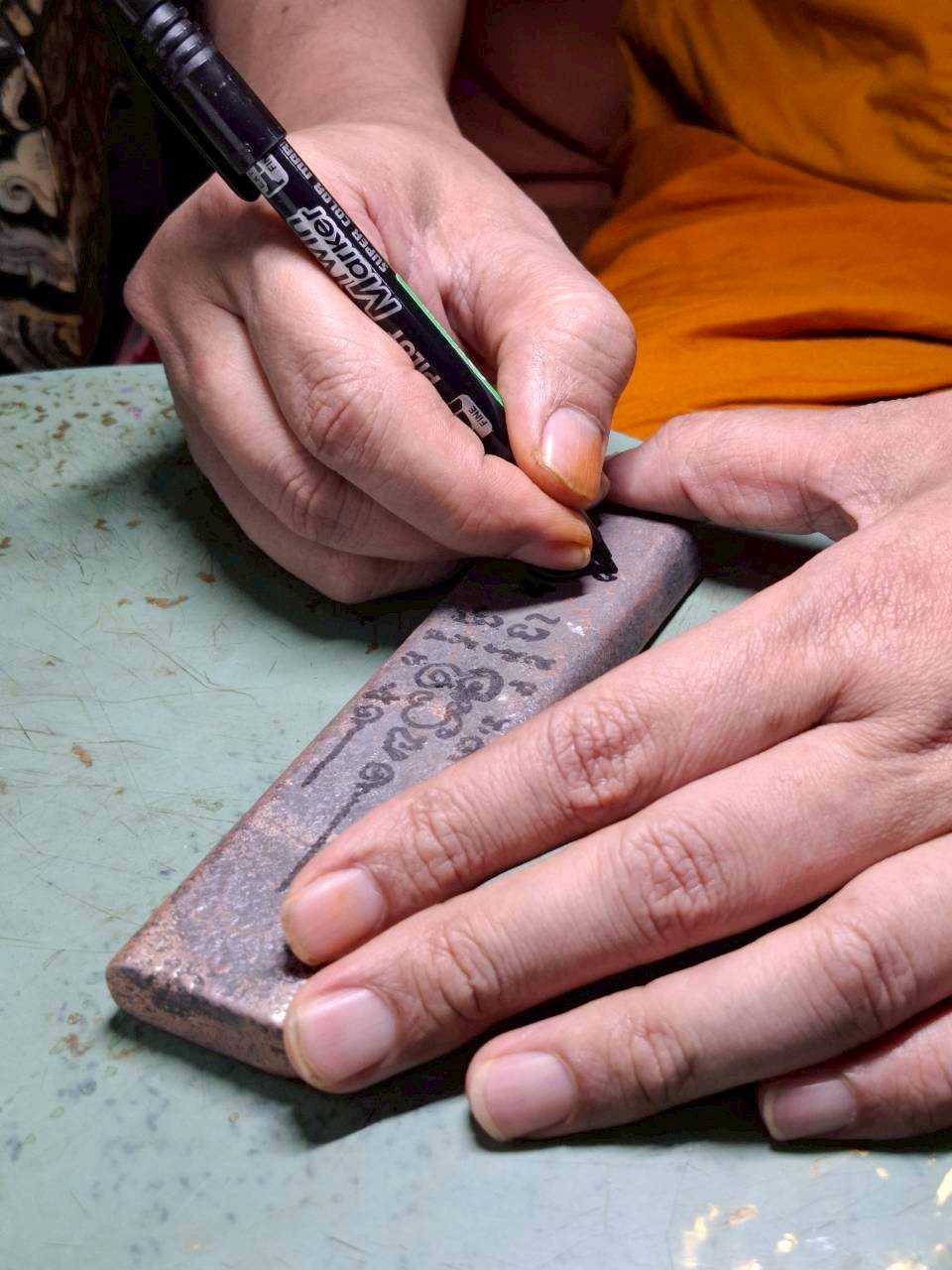 - แผ่นจารชนวน พระครูสุทธิสารโสภิต (พระอาจารย์ต๋อง) วัดพุตะเคียน จ.กาญจนบุรี