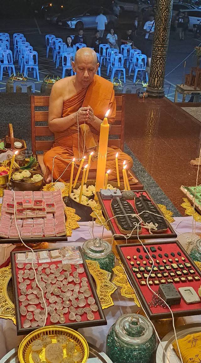 เม็ดกระดุมรุ่นแรก " พระสังกัจจายน์เรียกทรัพย์ " พระครูรัตนภาวนาวิสุทธิ์ วิ. ( หลวงพ่อนวณ ปริสุทฺโธ) วัดแก้วเจริญ อ.อัมพวา จ.สมทรสงคราม จัดสร้างเป็นที่ระลึกในพิธีจันทร์เพ็ญ 68 วันลอยกระทง ขึ้น 15 ค่ำ เดือน 12 (5 พ.ย. 68) ลักษณะเม็ดกลมครึ่งซีก และมีขนาดเส้นผ่าศูนย์กลาง 1.45 มม. ด้านหลังประทับยันต์พระสังกัจจายน์ (ปางขอลาภ) โดย กลุ่มงานหล่อโบราณ " ศานต์สินธิ์ " เทหล่อถวายฯ มีรายละเอียดดังนี้.- (ข้อมูลเพิ่มเติม...) 1. เนื้อเมฆสิทธิ์ หล่อโบราณเทดินไทย จำนวน 499 เม็ด กดโค๊ตวัดและหมายเลขในพิมพ์ 1-499 ร่วมทำบุญ 799 บาท 2. เนื้อโลหะชนวนฯ จำนวน 499 เม็ด ตอกโค๊ตวัดและหมายเลข 1-499 (สำหรับร่วมทำบุญ และแจกเป็นที่ระลึกในพิธีฯ) โดยได้นำหมายเลขสวย จำนวน 27 เม็ด ซึ่งอยู่ในดอกบัวในพิธีปลุกเสก เปิดให้ร่วมทำบุญฯ (รายละเอียด...) 3. เนื้อเมฆสิทธิ์ หล่อโบราณเทดินไทย จำนวน 55 เม็ด กดโค๊ตวัด พิเศษ 3 โค๊ต (ถวายหลวงพ่อนวณ ปริสุทฺโธ สำหรับมอบเป็นที่ระลึกฯ)